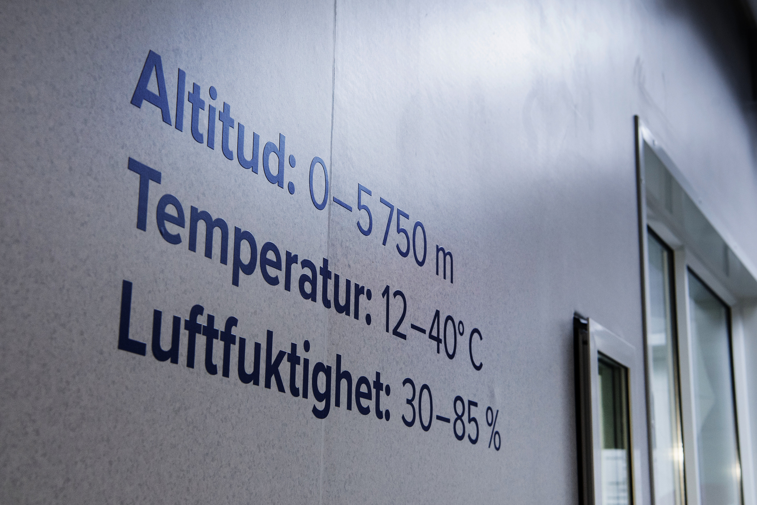 Klimatrummet har möjligheten att anpassas till temperatur från +12°C till +40°C, luftfuktighet från 35 procent till 90 procent och höjdmeter över havet 0 till 5 750 meter, vilket är lite högre än Base camp på Mount Everest. Simulering av höjdmeter sker med via förändring av syrehalten inne i rummet. Desto lägre syrehalt i luften desto ”högre” upp. 40-60 procent luftfuktighet är vad som brukar sägas vara normalt för privatbostäder och arbetsplatser. 90 procent luftfuktighet kan förekomma i Sverige en dimmig dag.